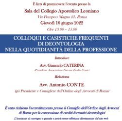 ASSOCIAZIONE FORENSE EMILIO CONTE – AFEC, dopo la forzosa pausa per la pandemia da Covid 19, a grande richiesta è …
